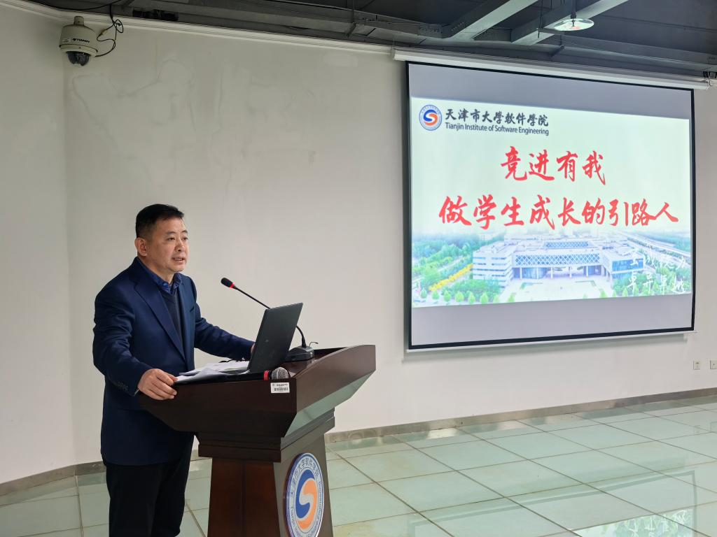 张建勇副书记对班主任一直以来的辛勤工作表示感谢,并对天软“竞进行动”进行部署动员。他强调班主任是大学生思想政治育人工作的重要力量,希望班主任落实好“有温度的教育”,深耕学生服务一线,以更加饱满的工作热情和务实的态度投身到“竞进”行动中。他引用习近平总书记“好的思想政治工作应该像盐,但不能光吃盐,最好的方式是将盐溶解到各种食物中自然而然吸收”的寓意,强调在思政育人工作中,辅导员、班主任要像技艺高超的厨师一样,使思政教育如盐在肴、化于无形,有机融入人才培养全过程。