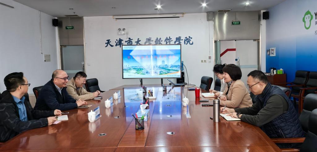 2025年3月12日,天津市工会管理干部学院党委书记郭振影一行到我校走访调研。双方围绕职工教育与培训、产教融合创新等议题展开深度交流,为深化合作注入新活力。天津市大学软件学院副校长刘军利全程陪同调研并主持座谈。我校创新创业学院负责人及相关人员一同参与。