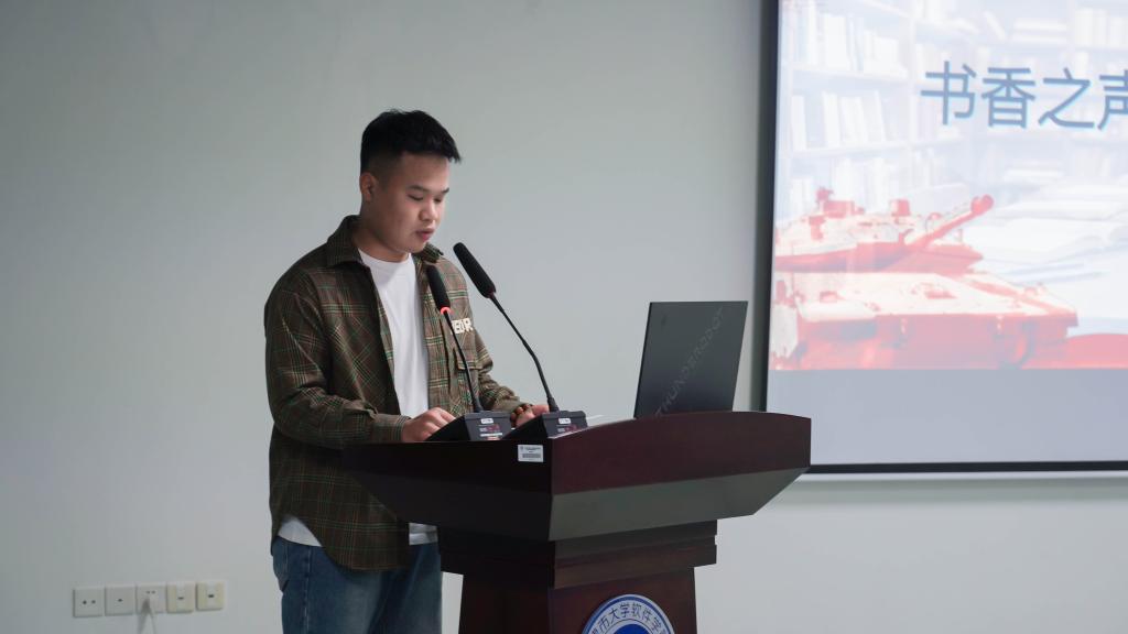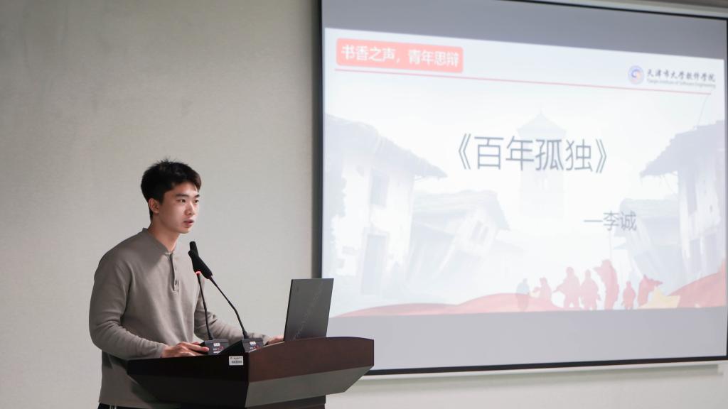 在读书分享环节,马文龙、胡春鹏、杜思聪、何嘉文、李诚五位同学分享了《我与地坛》、《文化苦旅》、《百年孤独》等经典书籍的阅读体会。青年学子以鲜活视角诠释经典,展现当代青年的文化自信。随后,李欣老师剖析经典著作《局外人》中的人文精神与时代价值,并提醒同学们要透过现象看本质,要学会独立思考,做自己人生的“局内人”。