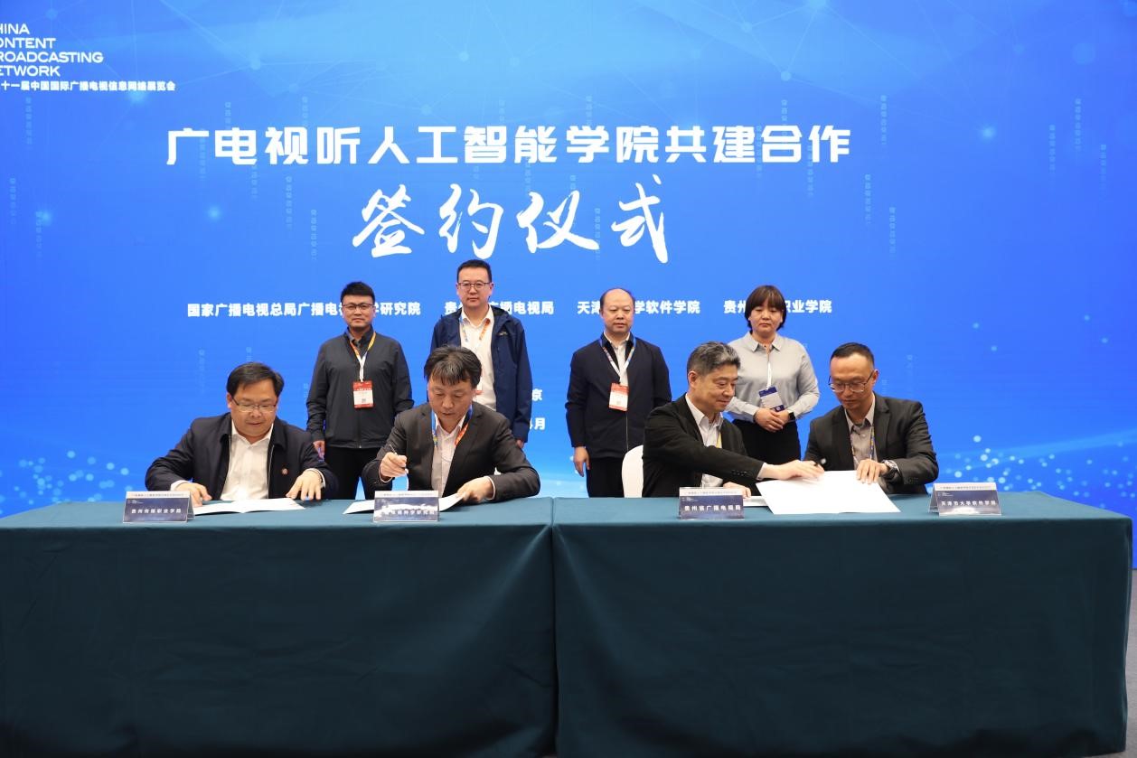 2025年4月22日下午,全国首家“广电视听人工智能学院”共建合作签约仪式在北京首钢国际会展中心举行。该学院由国家广播电视总局广播电视科学研究院、贵州省广播电视局、天津市大学软件学院、贵州传媒职业学院四方共同筹建,标志着我国广电视听领域人工智能人才培养进入新阶段。我校副校长刘军利代表学校出席签约仪式并致辞。