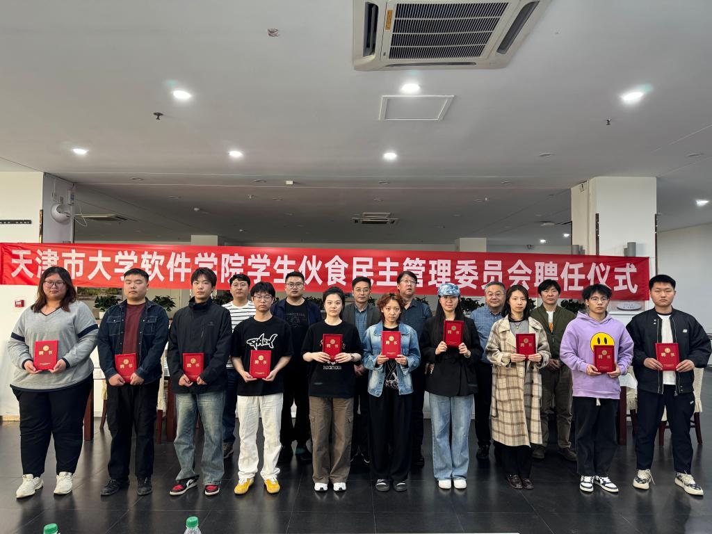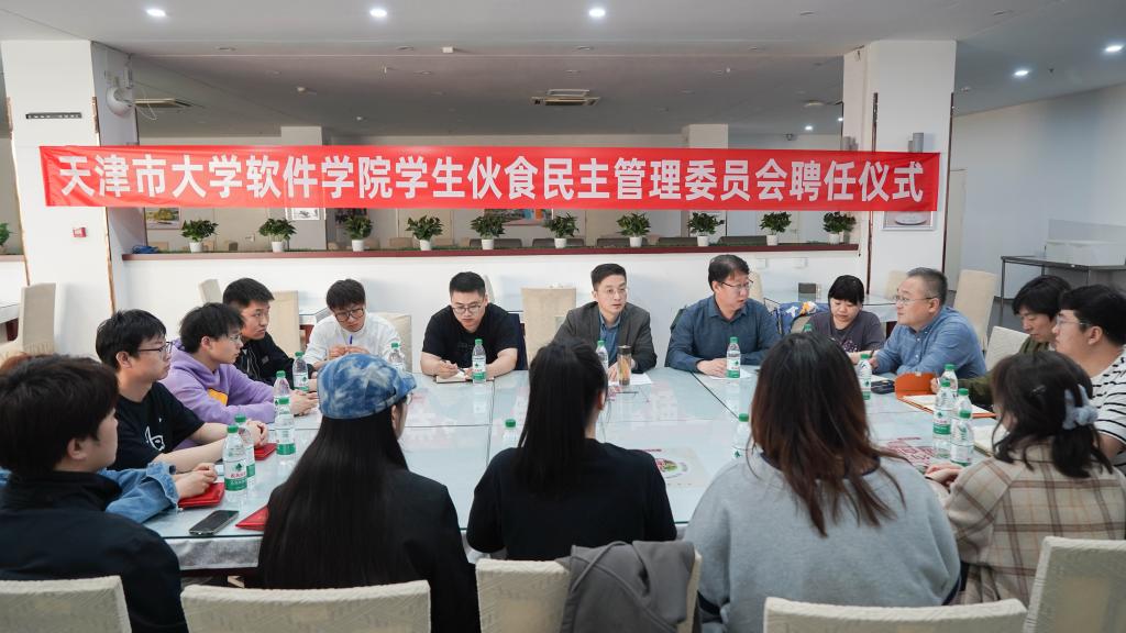 为深入贯彻落实习近平总书记关于“办好人民满意的教育”指示精神,鼓励学生参与学校的膳食民主管理,以“竞进”之姿提高校园膳食服务保障水平,日前我校批准成立了“天津市大学软件学院学生伙食民主管理委员会”(简称:伙管会)。4月24日下午,首届伙管会委员聘任仪式在食堂品元餐厅举行,副校长徐俊清出席会议,后勤保障服务部(财务部)、校团委、学生工作部相关负责同志及学生代表参加会议。