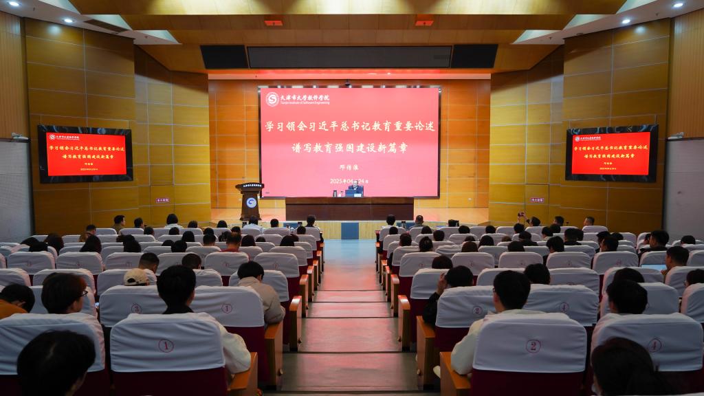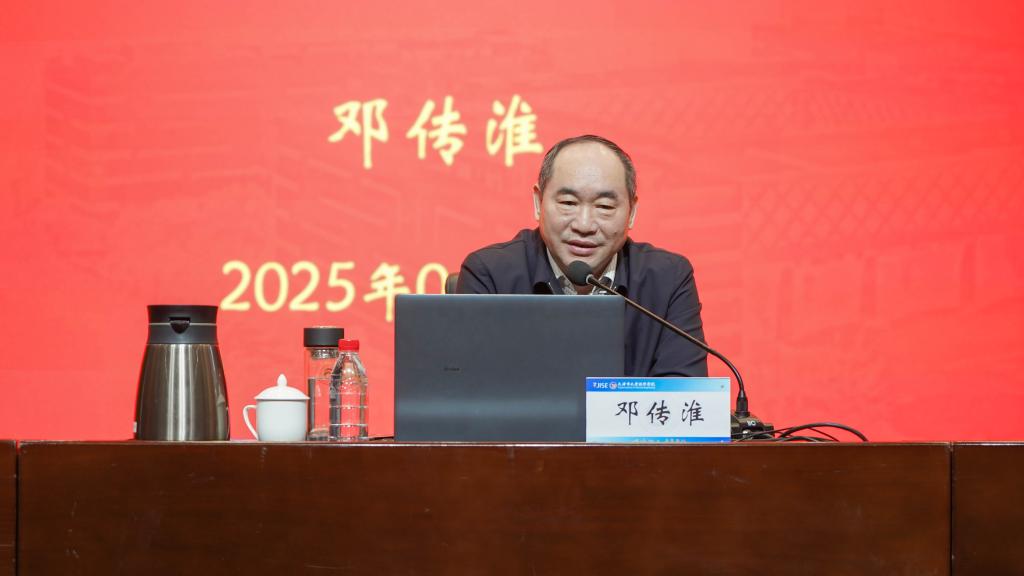 2025年4月24日上午,我校举办教育强国专题报告会,特邀中国教育学会学术委员会常务副主任委员、教育部政策法规司原司长邓传淮以“学习领会习近平总书记教育重要论述,谱写教育强国新篇章”为题作专题报告。校领导班子出席,全体教职员工、协同育人企业代表、学生代表参加。报告会由党委书记侯洁主持。