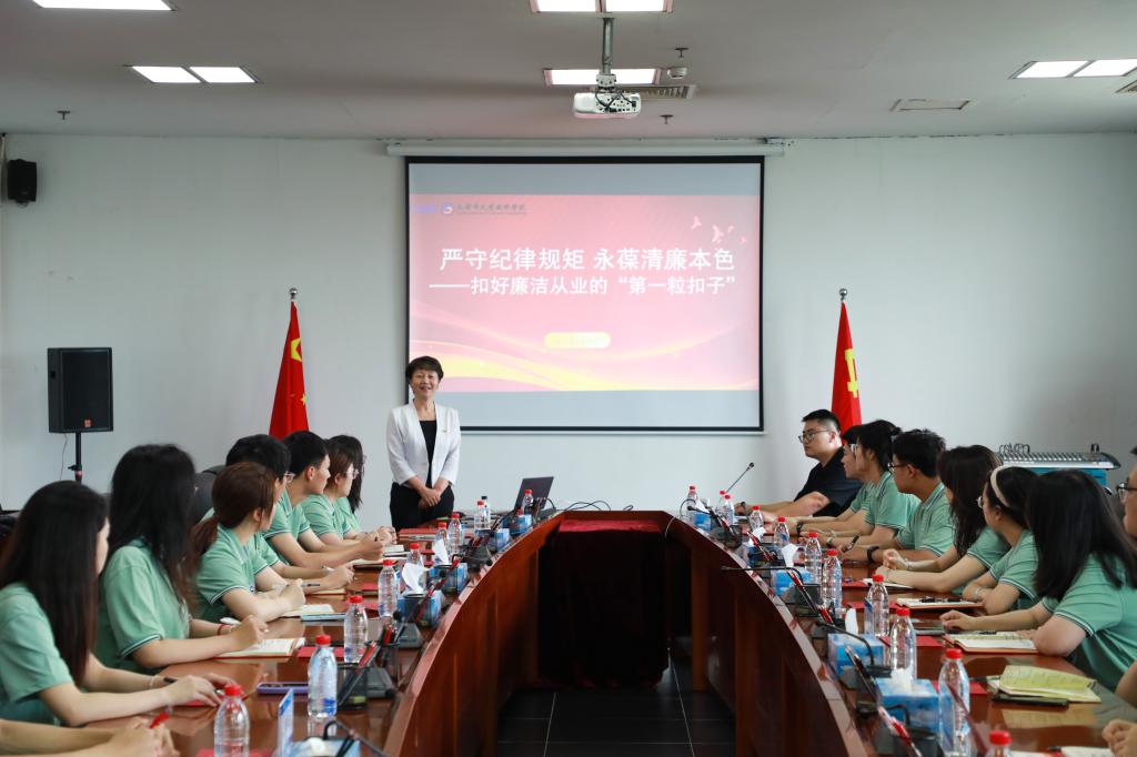 侯洁以“严守纪律规矩永葆清廉本色——扣好廉洁从业‘第一粒扣子’”为题,围绕毕业生党员如何在新时代守住政治规矩和纪律红线、更好地发挥党员作用,为毕业生党员指明人生航向。侯洁强调,要深刻认识到,深入贯彻中央八项规定精神旨在推动全面从严治党向纵深发展,是长期有效的铁规矩、硬杠杠。毕业生党员要树牢纪律意识,保持清醒头脑,站稳政治立场,锲而不舍落实中央八项规定精神。