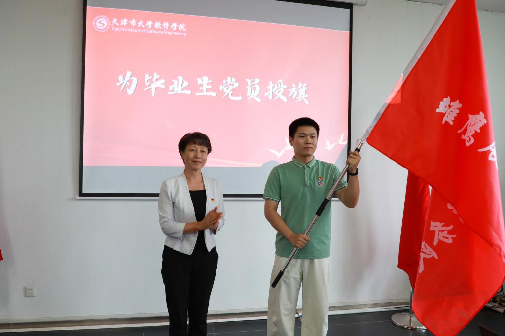 课程伊始,学生工作部负责人带领毕业生党员重温入党誓词,浑厚响亮的铮铮誓言体现出每一位毕业生党员面对党旗的庄严承诺。现场为毕业生党员代表颁发政治生日贺卡、授“毕业生党员雏鹰展翅服务队”旗,寄语毕业生党员坚定理想砥砺初心,以青春热血诠释使命,以实际行动为党旗增光添彩。