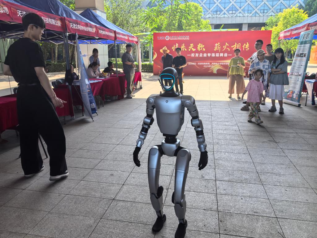 一家参展的校友企业在现场带来了人形机器人,并进行操作演示。机器人灵巧地完成抓取、移动物品以及精准定位等动作,展示了其应用的灵活性。新颖的展示,成为现场引人瞩目的亮点,吸引了诸多同学驻足观看,互动询问技术细节,也让人直观了解到该企业的创新活力。