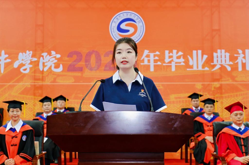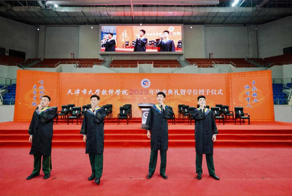 毕业典礼前特别设置了暖场环节,教师、企业工程师、辅导员、退役大学生士兵及毕业生代表演唱了《当那一天来临》《是老师是学生》等歌曲,表达了对母校的浓浓眷恋、对师友的依依不舍和对未来征程的无限憧憬。此外,学校还准备了“天软专属礼包”、“食堂定制餐卷”等礼物,祝愿全体毕业生高扬理想之帆,驾长风、破巨浪,在人生广阔的航程中勇毅前行,逐梦未来!