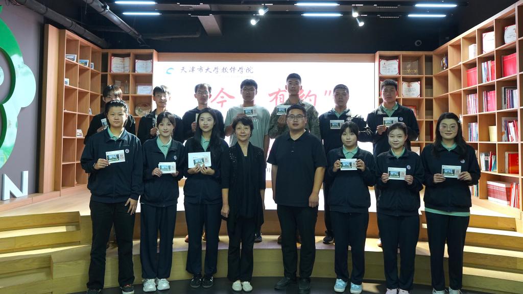 在“时光胶囊·共赴校庆之约”环节中,同学们在明信片上写下“双份约定”——对自己在天软校园学习生活的目标,以及对学校十五周年校庆的真挚祝福。师生代表约定在学校二十周年校庆时再启封,见证成长与变迁,这份“双向奔赴”的情谊,成为本次座谈会最珍贵的纪念。