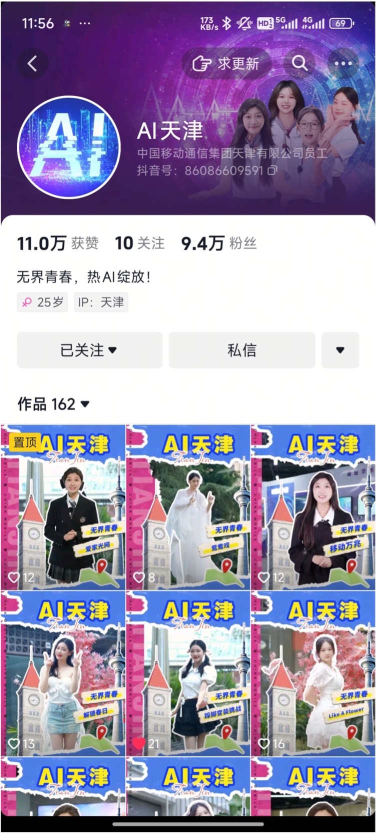 除了拍摄剪辑,还带领学生运营新媒体短视频账号。2023级学生说:去年老师带着我们运营“ai天津”“移起ai天津”账号,在这一过程中,我学会了短视频账号的运营不光是发布视频那么简单,还需要敏锐的探查到实时热点,找到对表的内容赛道。这些实际项目的参与让我深刻体会到短视频的运营也是一门很深的学问,只有实践才能明白其中的学问。