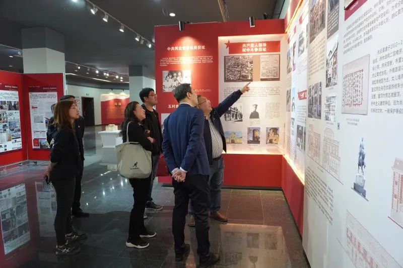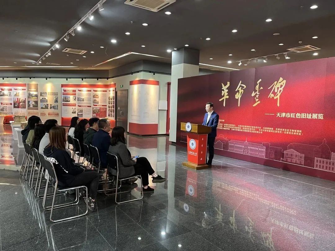 在参观天津市红色旧址展览时,张健维带领大家面向鲜红党旗重温入党誓词,铭记初心使命。展览以天津市现存红色旧址为主体,通过旧址测绘展示、多媒体展示、三维模型立体展示等方式,生动鲜活地用建筑遗址讲述红色革命故事,大家追溯了红色记忆,立志要传承红色文化。