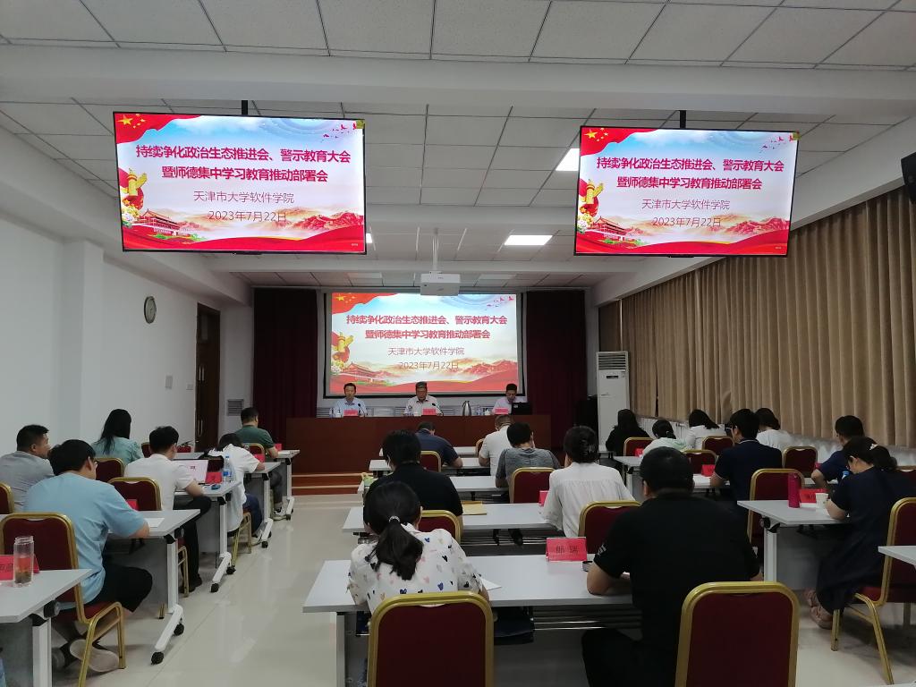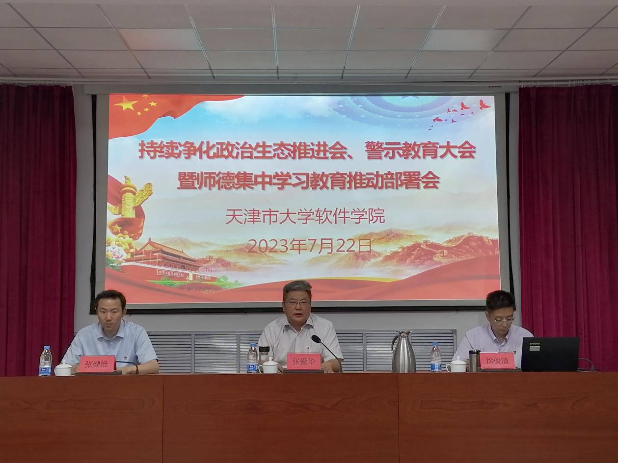 会议要求,学院各级党组织要认真贯彻落实会议精神,认真完成好持续净化政治生态和师德集中学习教育各项任务,形成强大合力,确保工作实效,为建设更加美好的天软做出新的更大贡献。