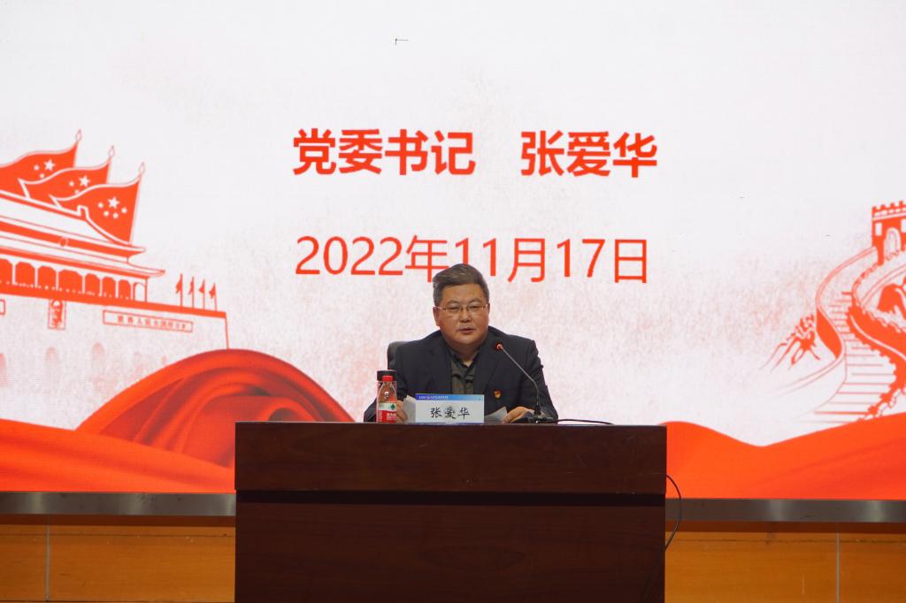 张爱华指出,学习宣传贯彻党的二十大精神是当前和今后一个时期的首要政治任务,对于动员学院广大党员干部和师生员工更加紧密地团结在以习近平同志为核心的党中央周围,高举中国特色社会主义伟大旗帜,落实立德树人根本任务,奋力建设高质量教育体系,加快推进教育现代化、建设教育强国、办好人民满意的教育,为全面建设社会主义现代化国家、全面推进中华民族伟大复兴而团结奋斗,具有重大现实意义和深远历史意义。