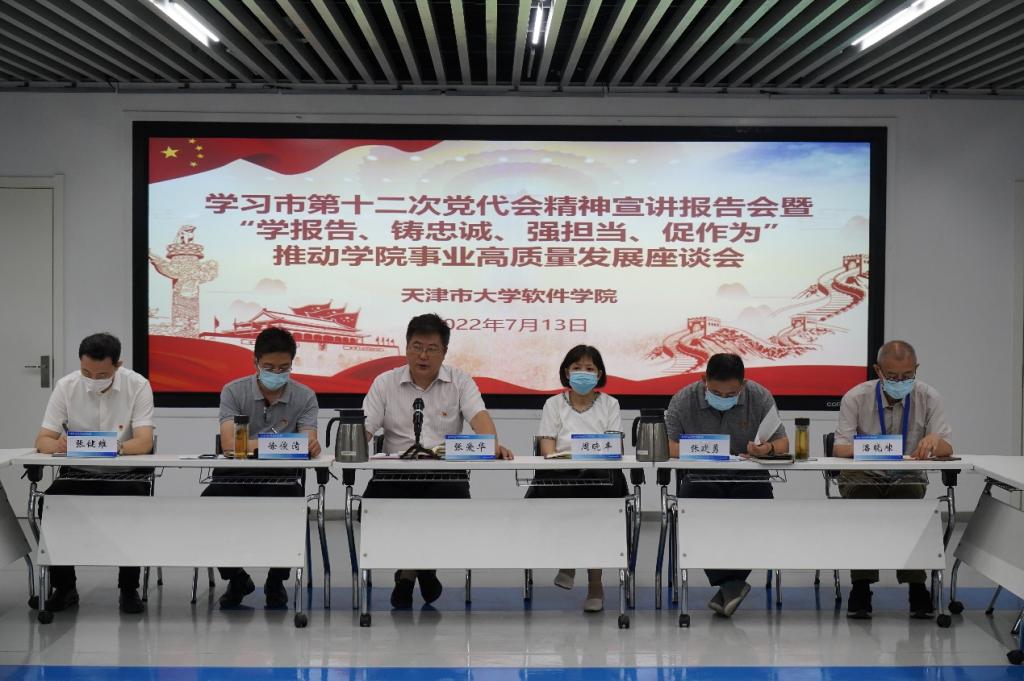 7月13日上午,我校召开市第十二次党代会精神宣讲报告会暨“学报告、铸忠诚、强担当、促作为”推动天软事业高质量发展座谈会。领导班子成员,全体中层领导干部,各部门科级以上人员参会。