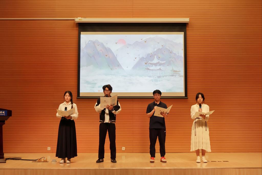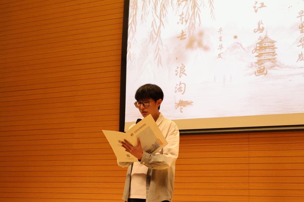 诗韵千年,是文化的瑰宝;书香传承,世界在我眼中。为传承经典、陶冶学子情操,值此世界读书日到来之际,学生第三党支部、卓越第三分公司联合满庭芳文化社于4月18日在小报告厅举办“诗韵千年,书香传承”传统诗歌主题分享活动。活动以朗诵、唱词、配音等多元形式,带领师生在声韵之美中触摸中华文脉的绵延不息,在平仄韵律中体味中华文化深厚底蕴。