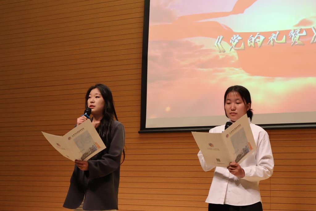 李安然、周雅两位诵者以声音作画,将“北国风光”词作的磅礴化作了学子眼中的星辰大海。舞台光影随“数风流人物”渐次点亮,让雪原长城在停顿与重音间巍峨浮现。