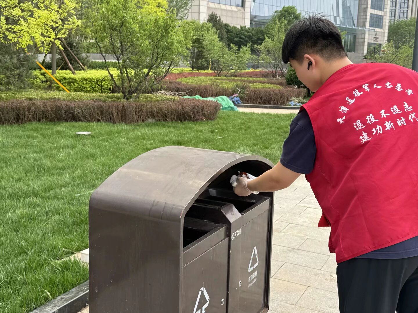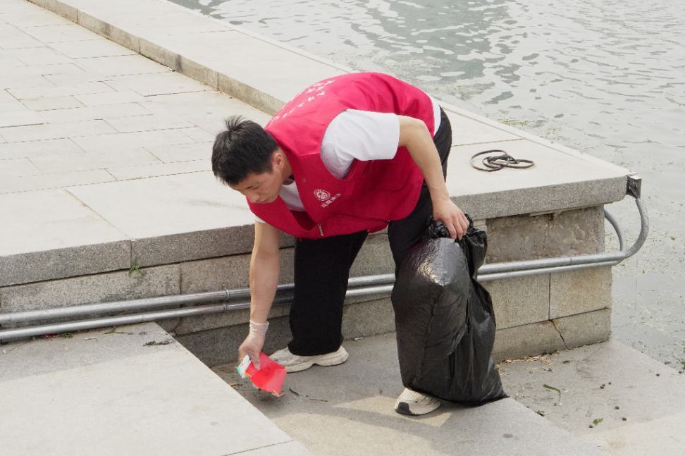 活动当日,10名身着红色马甲的“戎光”退役军人志愿者佩戴手套、手持垃圾袋,沿解放桥至海河沿岸细致清理烟头、塑料废弃物等垃圾,并协助环卫工人清洁公共垃圾桶、分类归集可回收物。志愿者们充分发挥军人作风,分工协作、高效有序,细致入微地还原了河岸整洁面貌。从“国防绿”到“志愿红”,戎光学子用实践诠释“奉献、友爱、互助、进步”的志愿精神。业务2487班李连齐表示:“海河是天津的母亲河,保护海河环境是我们当代青年的责任与义务。”