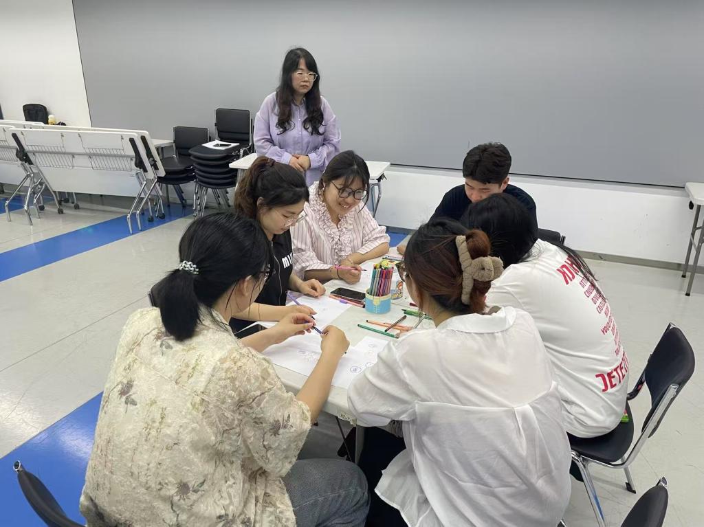最后的“压力四宫格”环节,通过在纸上呈现曾经遭遇的压力困扰、当时自己的状态、应对场景、现在的状态等梳理了不同阶段的感受。完成绘制后,各小组内展开讨论与分享,大家相互借鉴应对压力的好方法,在交流中收获了满满的“心灵干货”。