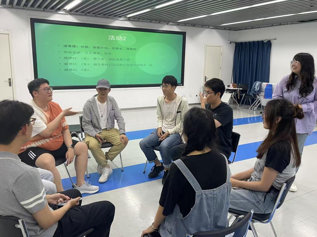 随后,有趣的“滚雪球”游戏登场。同学们在场地中自由走动,彼此微笑着道一声“你好”,陌生感在这温暖的互动中渐渐消融。当主持人喊出暂停,大家迅速与身旁的同学进行自我介绍。有的同学幽默风趣,引得周围阵阵欢笑;有的同学真诚分享,瞬间拉近了彼此的距离。这个游戏不仅打破了隔阂,还让同学们在轻松氛围中感受到人际交往带来的愉悦,为后续深入交流营造了融洽的氛围。