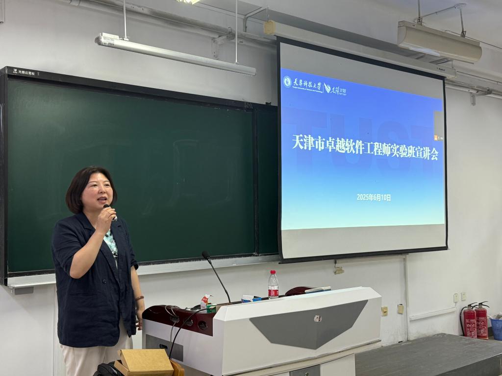 为进一步深化产教融合、促进校企合作,推动2025年市实验班项目走深走实,6月10日,教务部部长刘祥颖带队前往天津科技大学,开展2025年市实验班项目企业宣讲会。天津科技大学人工智能学院院长张贤坤、副院长陈亚瑞出席。我校协同育人企业奇安信、英业达、上海微钉等6家企业代表参与宣讲。